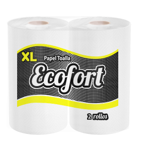 Papel Toalla Ecofort XL 100 de 28 grs celulosa virgen con prepicado, 22cm ultra absorbente en (pack x1), en bolsón contenedor de 10 rollos.